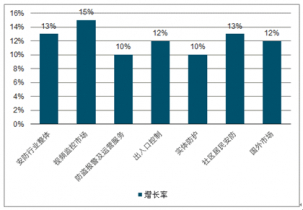 預計下半年逐季向好。在國民經濟長期向好的態勢不會改變的大環境下,我國安防行業近幾年仍將保持中高速增長的態勢。中國安防協會預計下半年安防行業的發展速度將達到13%,其中視頻監控市場增長15%左右,防盜報警及運營服務增長10%左右,出入口控制增長12%左右,實體防護增長10%左右,社區居民安防增長13%以上,國外市場的增長率預計為12%。